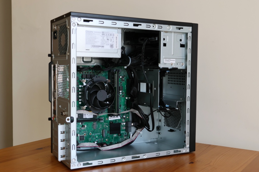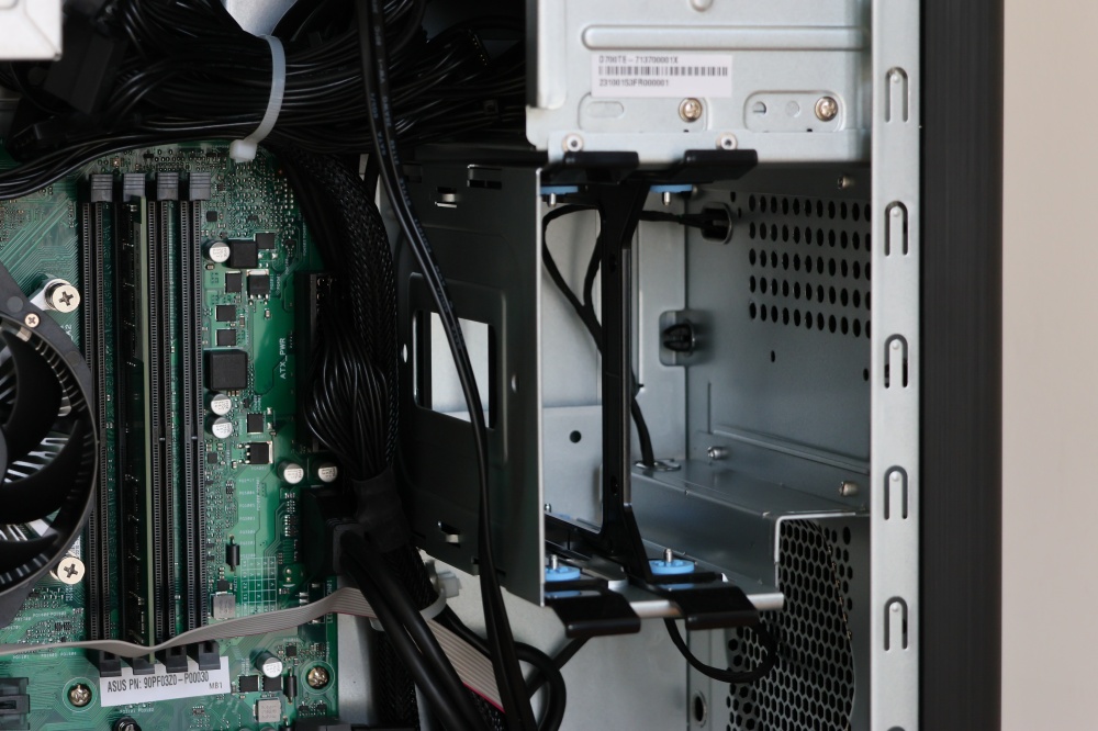 卸下機殼之後,內部組件也都可以輕鬆的安裝,像是預留的硬碟槽只要移除硬碟上的線材就可以快速取下硬碟,方便企業因應組織擴大或是職務調整有升級需求時,不用整批設備汰換導致成本增加,而是能靈活依照需求擴充儲存空間。