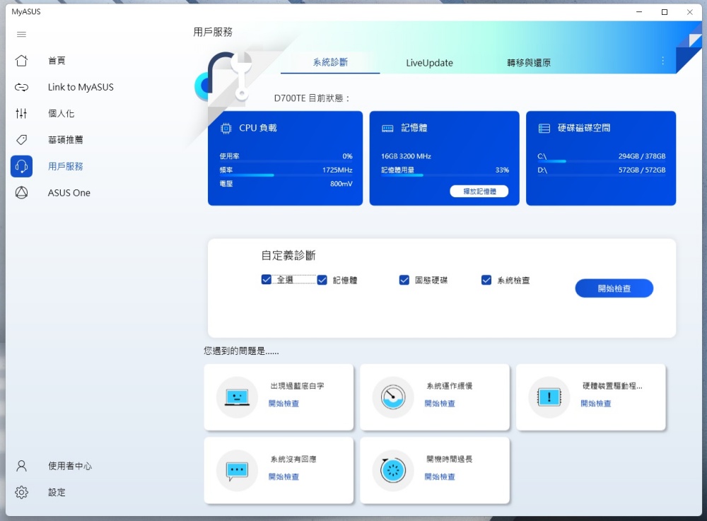 而 MyASUS 則提供多樣化的個人化服務,還可一鍵診斷電腦問題。