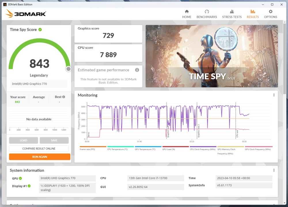 3DMark 圖形處理測試在使用 Intel UHD Graphics 770 顯示器下,Time Spy 項目下得到 843 分的成績,足以支援四部顯示器輸出;若有升級需求,最高可以搭配 GeForce RTX 3060 顯卡,或是換成 Intel Arc A380 顯示卡來提升繪圖處理表現,像是應用在 3D 建模、影音編輯、算圖等相關工作上,都會更得心應手。最方便的是,可依企業需求選擇規格。