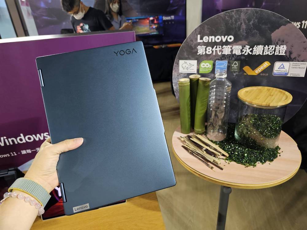 作為全球的科技巨頭,Lenovo致力以創新的產品和服務為全民打造智慧永續未來。為達成在 2050 年前淨零碳排的目標,Yoga新品全系列90% 的包裝皆使用可回收及可再生的材料製成,機台上蓋、鍵盤、電源供應器等也採用再生金屬、塑料等材質,為垃圾減量及再利用盡一份心力。為了彰顯Yoga品牌的永續理念,今年特別推出潮水「綠」新色,打造專屬的環保美學。