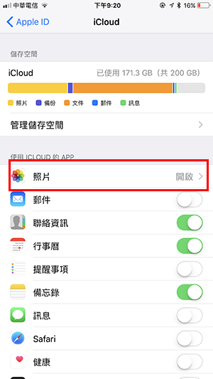步驟2:點擊「iCloud 照片」以啟用功能。隨後,只要裝置連接上 Wi-Fi 網路,照片就會自動被上傳到 iCloud 。