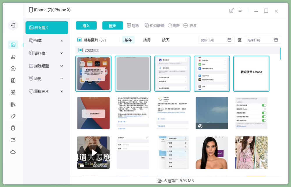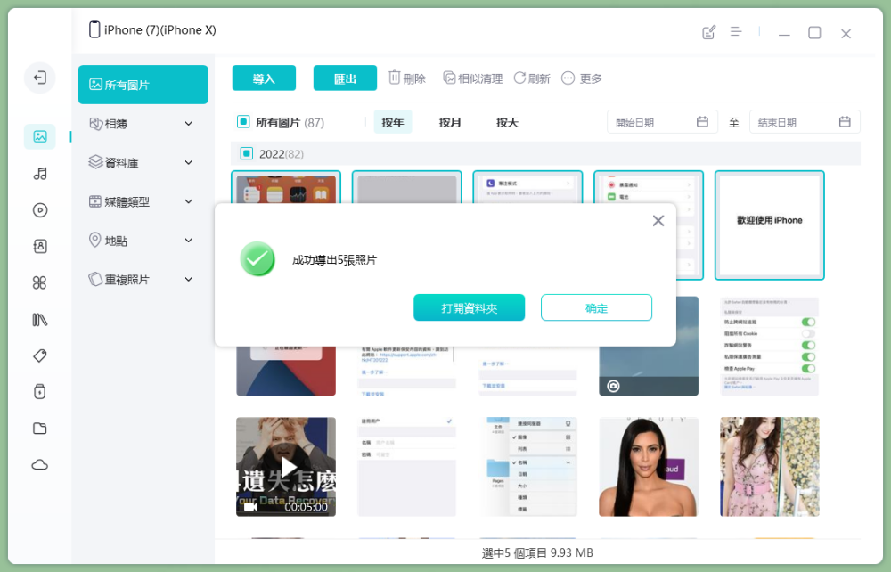 步驟3:選擇需要傳輸的圖片,點擊「匯出」,就可將 iPhone 照片備份到電腦了。