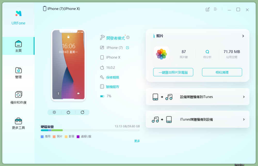 • 備份/還原/傳輸/管理 iOS 數據,比 iTunes 更好用:iPhone 檔案傳輸到電腦、支援選擇性回復備份檔案。