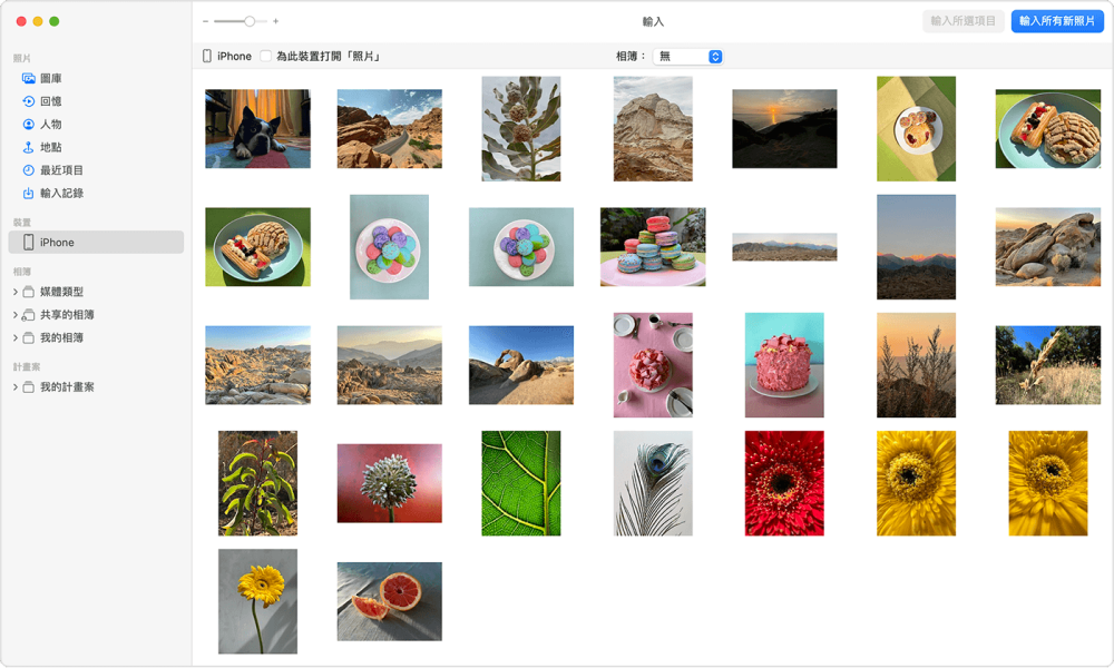 步驟2:開啟 Mac 電腦中的「照片」程式,可以看到「輸入」的新視窗,其中也會顯示所有的 iPhone 照片。