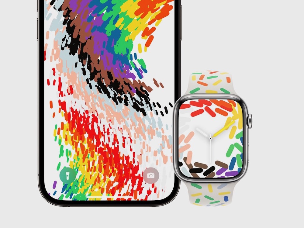 全新 Pride Celebration 錶面和 iOS 背景圖片致敬 LGBTQ+ 社群的聯合力量和相互支持。五顏六色的形狀彷彿從錶帶流動進入手錶螢幕,並在使用者抬起並移動手腕或點擊螢幕時有所回應。相襯的背景圖片是另一個對今年 Pride 設計充滿活力的詮釋,並會在使用者解鎖 iPhone 時動態移動。