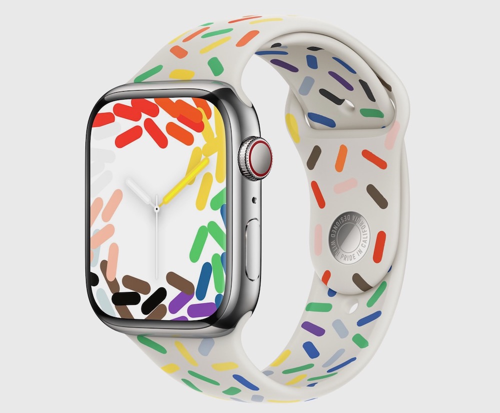 Apple 為向保護並促進全球 LGBTQ+ 社群平權的社會運動致敬,宣布推出全新 Pride 版運動型錶帶,並配有相襯的錶面和 iOS 背景圖片,Pride 版運動型錶帶將於 5 月 23 日晚上 9 時起於 apple.com/tw 以及 Apple Store App 開放訂購,並將於 5 月 25 日於 Apple 零售店開始供貨,售價為 NT$1,600。