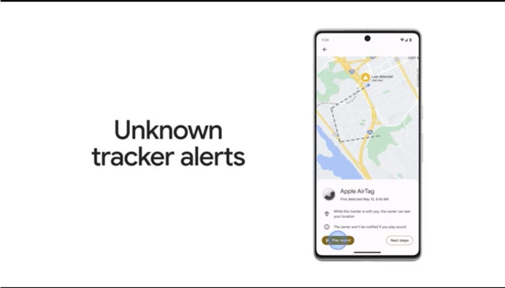 藍牙追蹤器提供了一種簡單、方便的方式來追蹤日常生活中的裝置,但也帶來被跟蹤的潛在隱憂。因此 Google 將在今年夏天於 Android 上推出「不明追蹤器警示」功能,用戶手機會在偵測到不明追蹤器後自動發出警報通知。接著能在地圖上查看該裝置是否跟隨著自己的移動路徑,並讓追蹤器發出鈴響,幫助我們尋找它的確切位置。