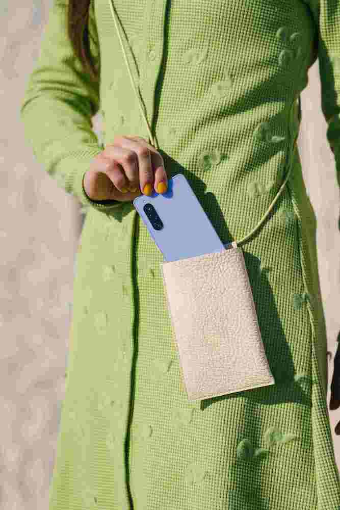 Sony Xperia 10 V可選購搭配專用保護套,套上保護殼的 Xperia 10 V 可直立、水平置於桌面,Xperia 10 V可立式時尚保護套(XQZ-CBDC)共提供四款與Sony Xperia 10 V 相搭配的同色保護套,輕薄的手機殼與機身完美貼合,握感與功能兼具。 可立式時尚保護套的原料亦同步採用 Sony 再生塑膠 SORPLAS,持續朝向Road to Zero目標邁進。