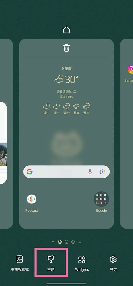 步驟 1、長按桌面後選擇「主題」,接著會進入「Galaxy Themes」,也就是三星的主題專區。