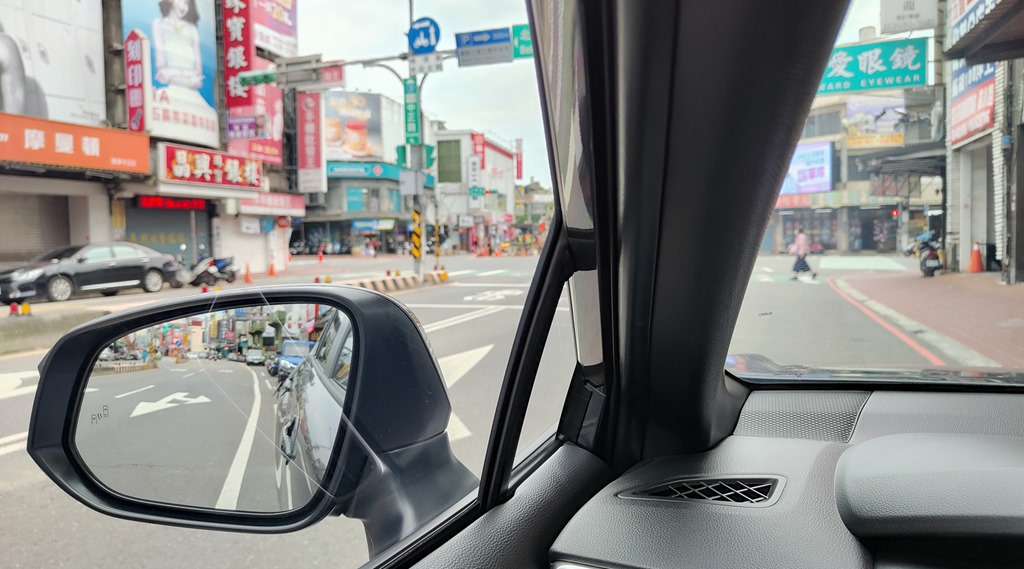又或者駕駛者身體往左移,也能輕鬆看到 A 柱後方的情形。