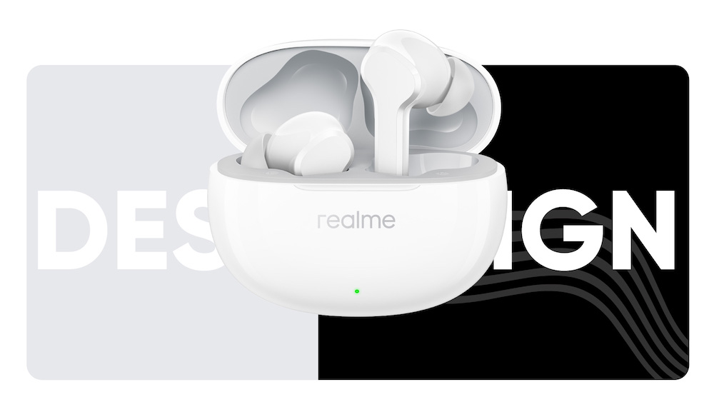 在 realme Design Studio 的專業調色下,realme Buds T100 白色款外殼採用了手機級的製作工藝,用德國火花紋、A2級拋光工藝打造出簡約時髦的純白色外觀,內部則運用近年來最流行的中性灰色,為整體視覺增添更多層次,打造滿分質感。不只外型好看,realme Buds T100 單耳耳機重量僅約 4.1 克,並具備 IPX5 防水等級,長時間佩戴依然舒適不負擔。