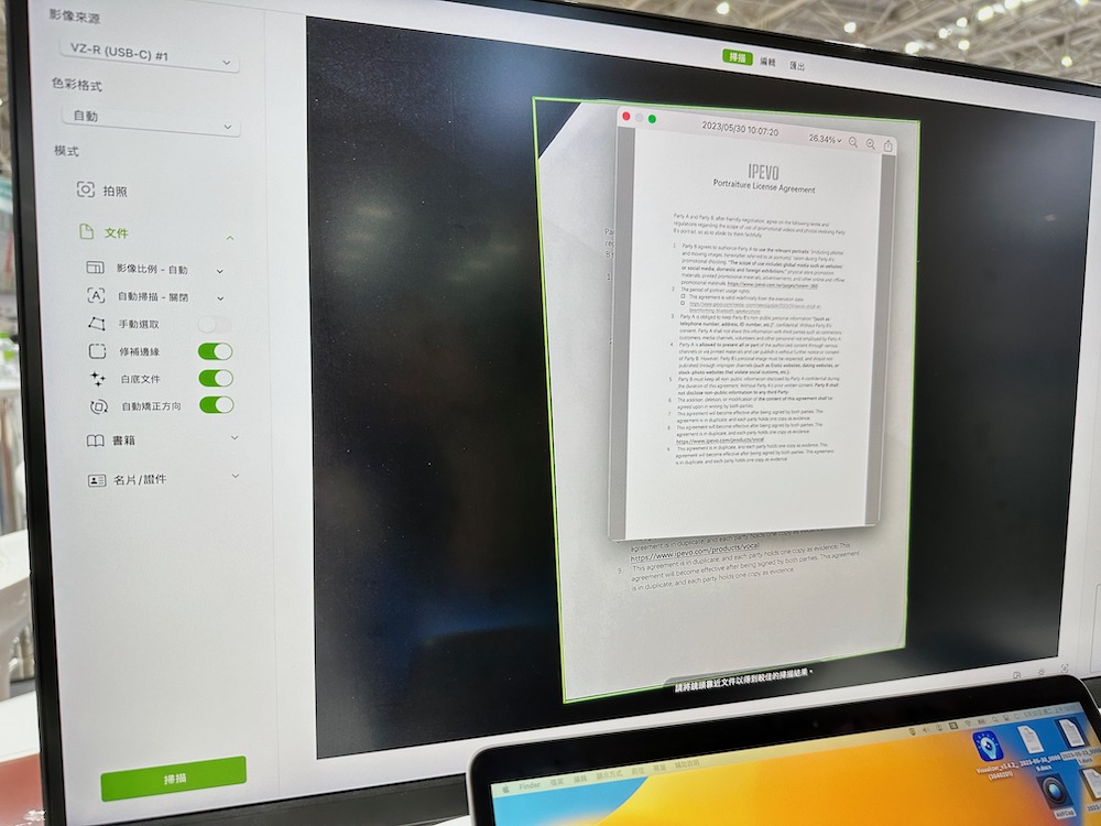除了視訊協作相關產品外,IPEVO 在軟體方面也不馬虎,在會場中帶來了 SnapCapture OCR 文件掃描軟體,支援用戶對合約、書籍、證件等不同文件類型來快速掃瞄,還可藉由 AI 判別出在掃描時是否有手指擋到畫面、每張掃描動作時的間隔時間,並能為掃描完成的檔案選擇想要輸出的格式,甚至還能夠變成 word 檔案來做進一步的編輯。