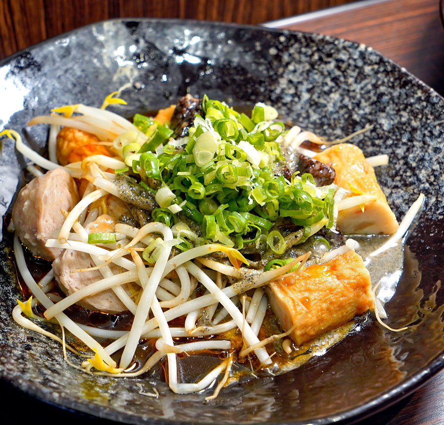 ▼涼拌綜合,裡頭有米血、黑輪、貢丸三種配料,乍看之下會以為是關東煮,但加上店家特製醬料才會發現原來是另外一回事(笑)!