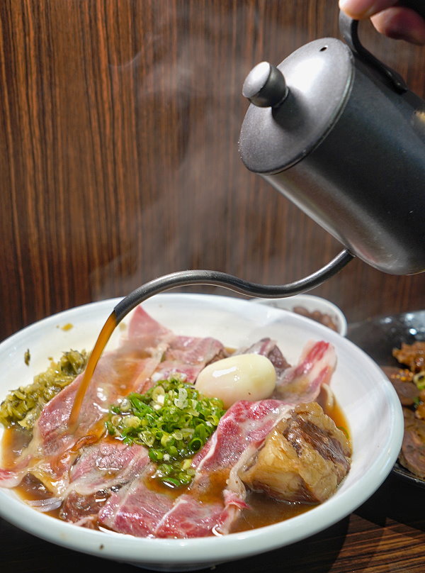 ▼淋上高湯後就是一碗份量十足的牛小排三重奏,光看就讓人口水直流啊~~肉肉控一定超愛這碗的!