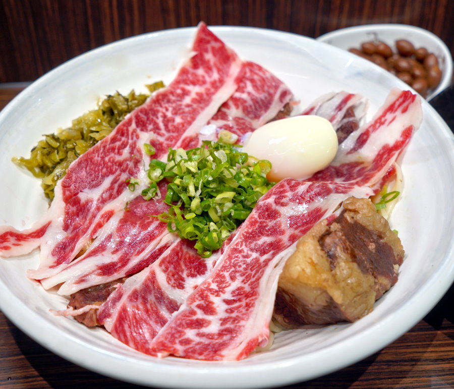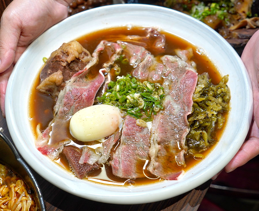 ▼這碗比臉還大的牛小排三重奏吃起來真的很過癮,不管是份量、肉質或是豐富度都很夠,點一碗兩人一起分食剛剛好!
