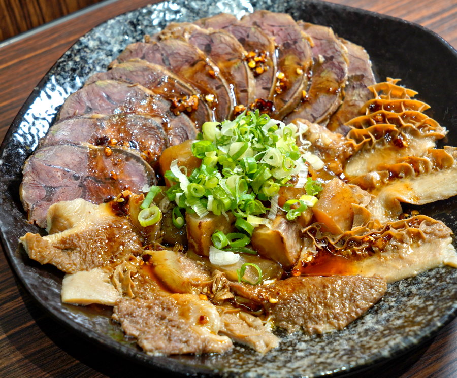 ▼綜合牛拼盤,一次可以吃到牛腱、牛肚、牛筋等三種部位,強烈建議一定要添加店家自製的辣油更夠味!