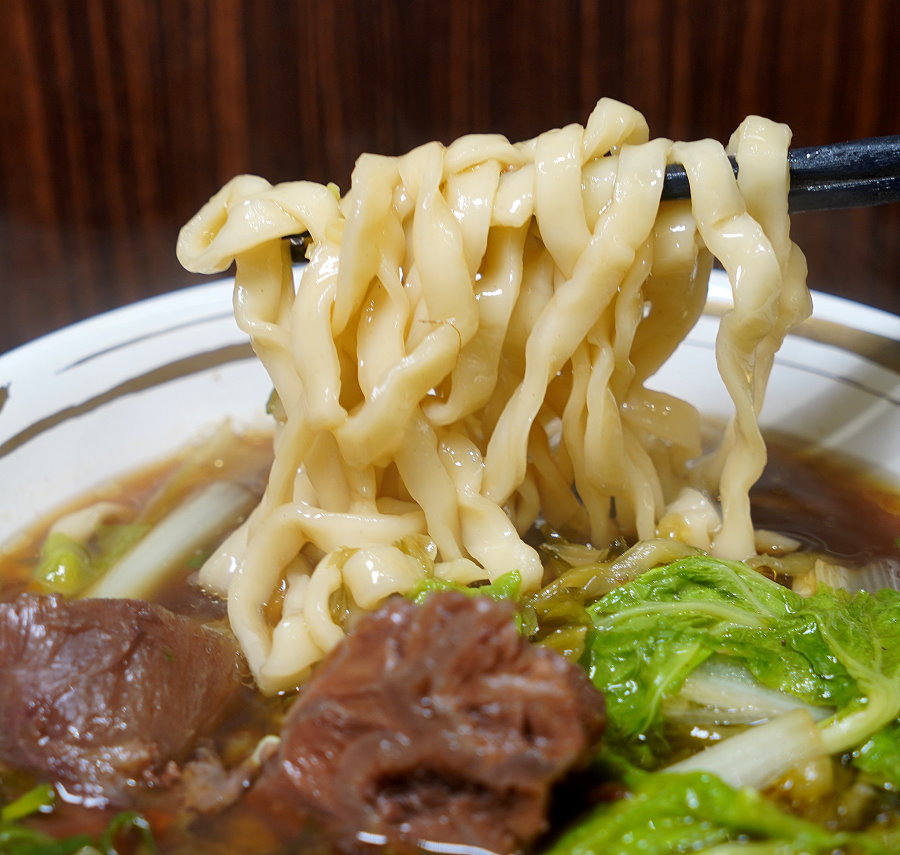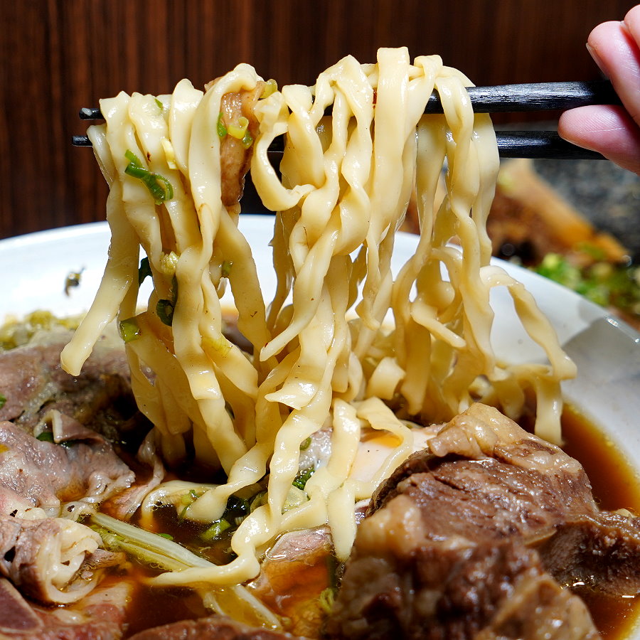 ▼粗麵很適合搭配紅燒湯頭,吃起來香Q又帶有嚼勁,麵粉香氣整個融入湯頭中很合拍啊!