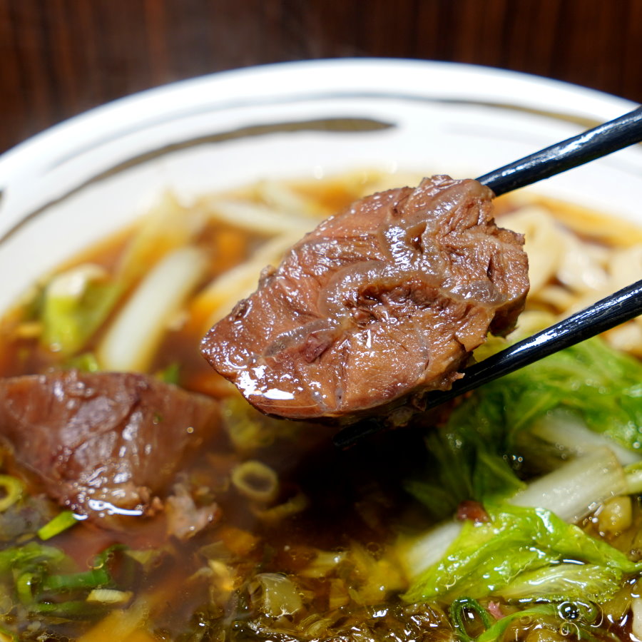 ▼牛腱給得相當厚實,還能吃到筋肉兩種不同口感,飽滿又軟Q,一口咬下裡頭滿滿牛肉香氣,也很銷魂啊!