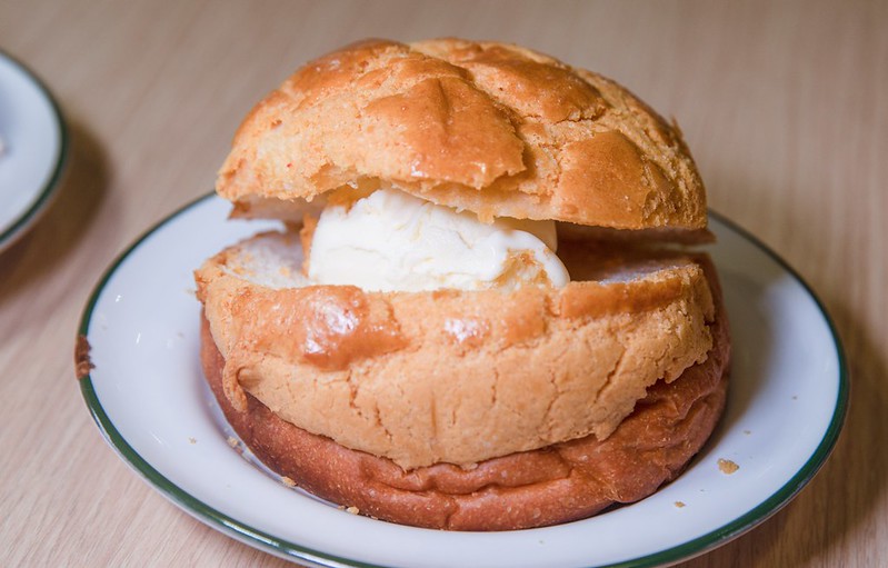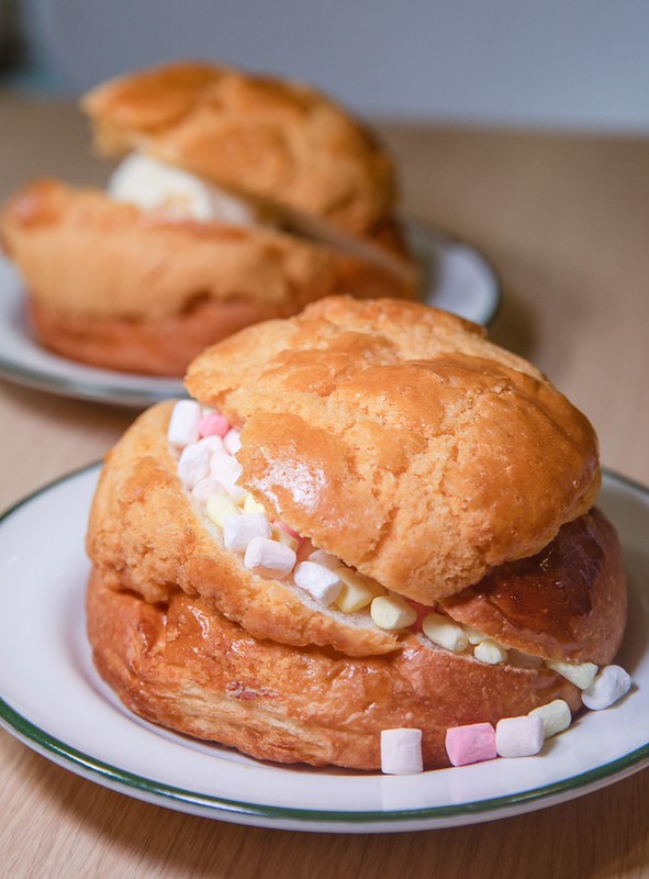 極之好味的菠蘿包有六種口味,我最愛的永遠是鹹口味的銷魂菠蘿包,這次試了兩款針對蘆洲愛吃甜食的大、小朋友設計的香草冰淇淋菠蘿包、棉花糖菠蘿包,突然讓我想去幾年前在澳門吃到的芥未冰淇淋波蘿包…另外綿花糖口味的波蘿包真的很特別,猜想小朋友應該會很喜歡吧。