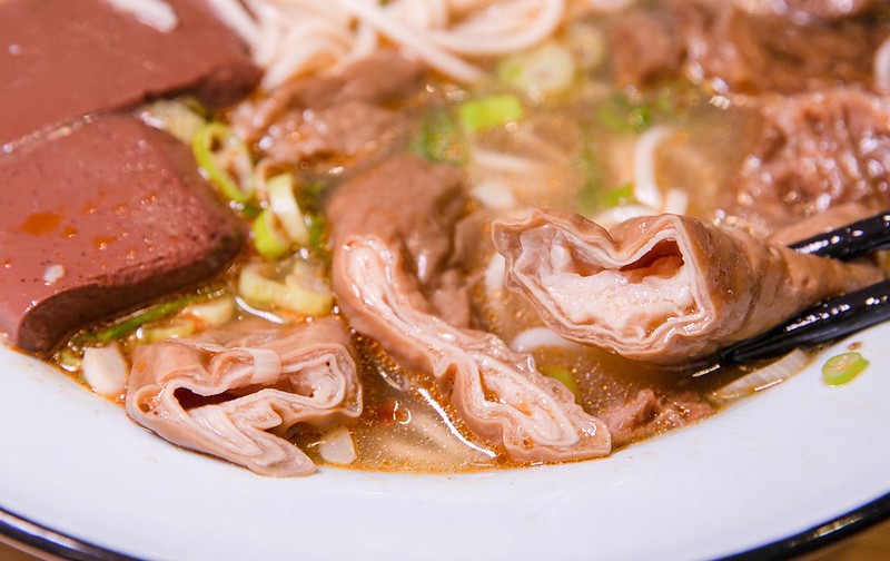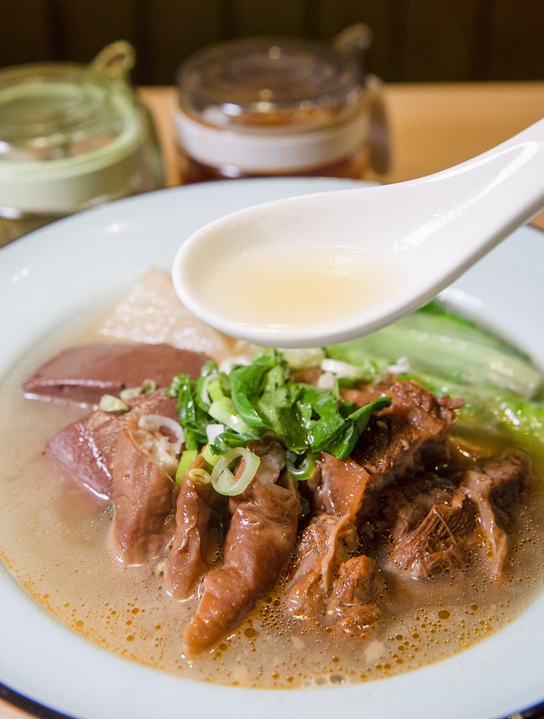配料方面第一次我選了滷大腸、鴨血和牛腩,鴨血鮮滑、牛腩嫩甜,但我最愛的還是招牌滷大腸,入味鹹香又不死鹹,越「步」越是多汁..不曉得可不可以整碗都是這個滷大腸….。