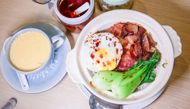 煲仔飯是極之美味我的第三個愛,通常我比較偏好晚上吃,因為飯量較足也比較飽足(我的主餐是晚上),個人首推香腸及臘腸雙拼,鳳爪排骨煲飯是我的新歡,醃漬過的排骨滑、鮮、鹹、嫩,又多了一點吮骨的意猶未盡,要說有什麼缺點就是有時飯下的鍋巴不夠….如果喜歡吃焦一點的鍋巴,上桌時別急著吃,或是交待服務生悶久一點。特別提醒的是,晚上點煲仔飯還加送飲料哦!