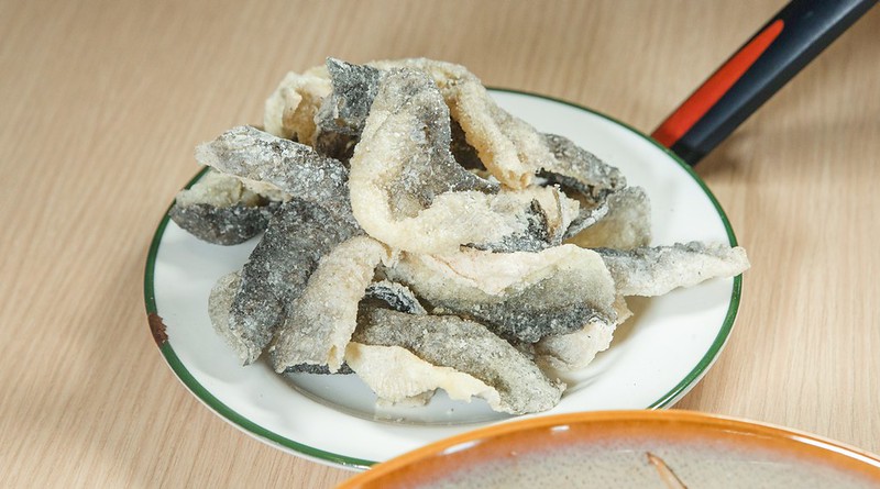 第二回在楊師傅的推薦下點了炸魚皮,我的媽真的超涮嘴,好吃到我們立馬加點了一盤。那魚皮的口感除了酥還是酥,好吧,還帶著入口的一秒微微脆,半點沒有腥味不說,怪的是也不怎油,只有越嚼越有味的魚皮香甜。沒想到,沒了鹹蛋的魚皮我更愛….心想,這魚皮都可以做成點心外帶包單賣了…..。不過,個人覺得這魚皮泡在車仔麵裡反而沒那麼誘人,即便吸了湯頭也確實多了一點滋與味。