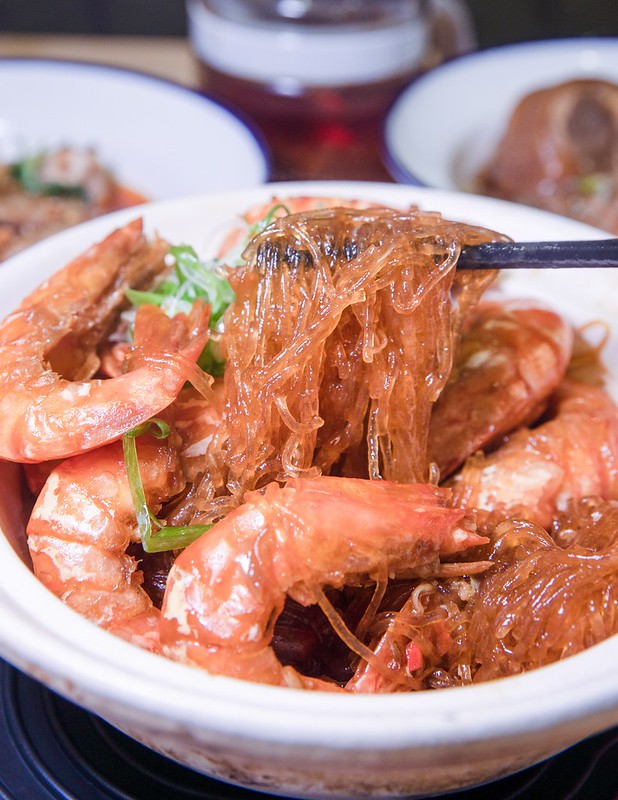 另外,個人推薦鮮蝦粉絲煲,蝦子很大隻也很入味,特別是底下吸滿油、香、鮮的粉絲真是好吃得亂七八糟。