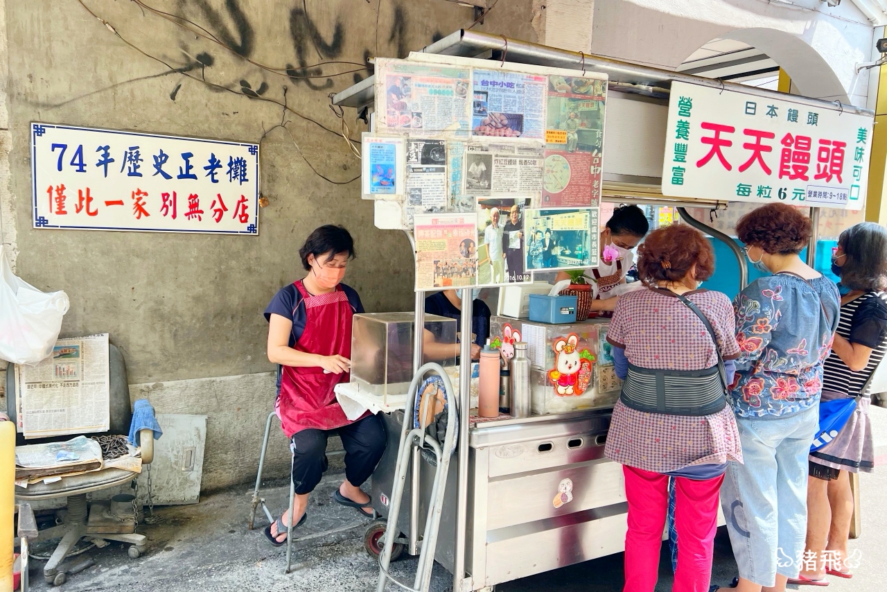 【天天饅頭】是一個歷史悠久的攤位,地點在台灣大道一段跟三民路交叉口附近,巷口是有名的「越南法國麵包工藝 Lò Bánh Mì Pasteur」,非常好找。每天營業時間9:00-18:00,我通常都是來買越南法國麵包當午餐,再買天天饅頭當點心,一次把這兩家台中超人氣美食買齊。