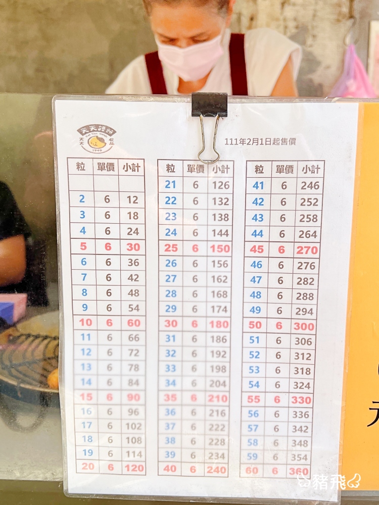 從第一代簡爺爺開始經營從最先的一毛錢到維持好幾年的5元,直到今年才漲到6元。好幾年前豬飛還在唸書的時候第一次來買,對於簡爺爺認真製作的印象很深刻,每一顆都是現場手工製作,紅豆餡料飽滿,口感鬆軟,實在美味。現在依舊維持超級銅板價,一次買10顆解饞才過癮。