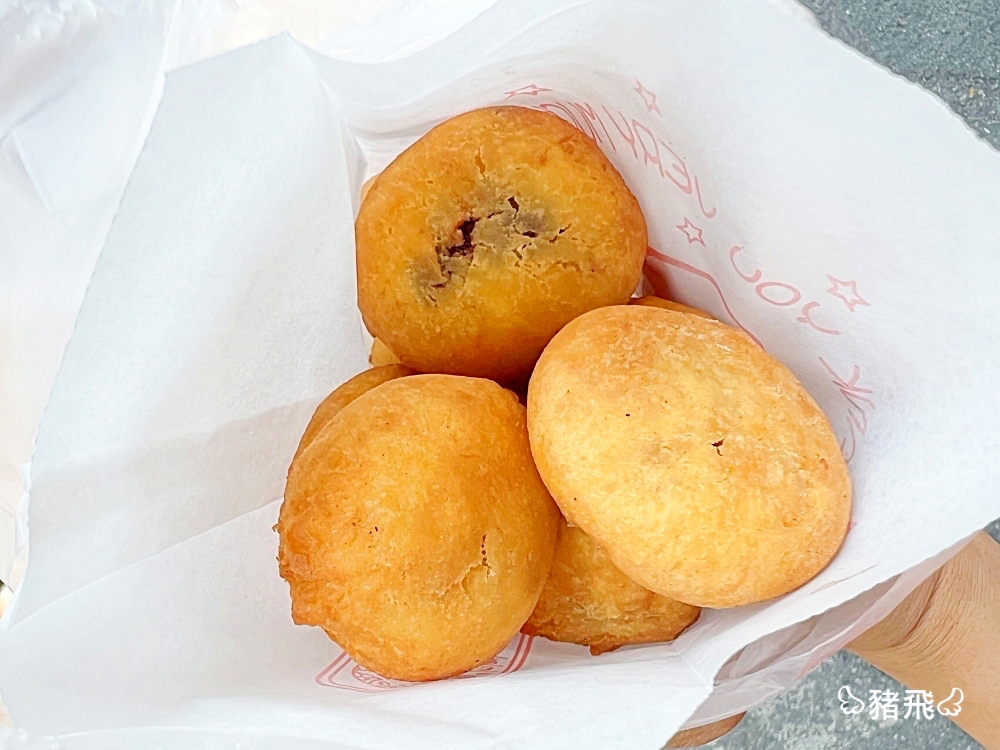 每一顆炸饅頭外表呈現金黃色圓滾滾飽滿的模樣,光是金黃酥脆的外表就超吸引人!紅豆泥內餡香甜,甜度比較高,配著無糖茶或黑咖啡就是很滿足的台式下午茶啦。我通常都會買10的倍數,跟家人朋友一起分享。