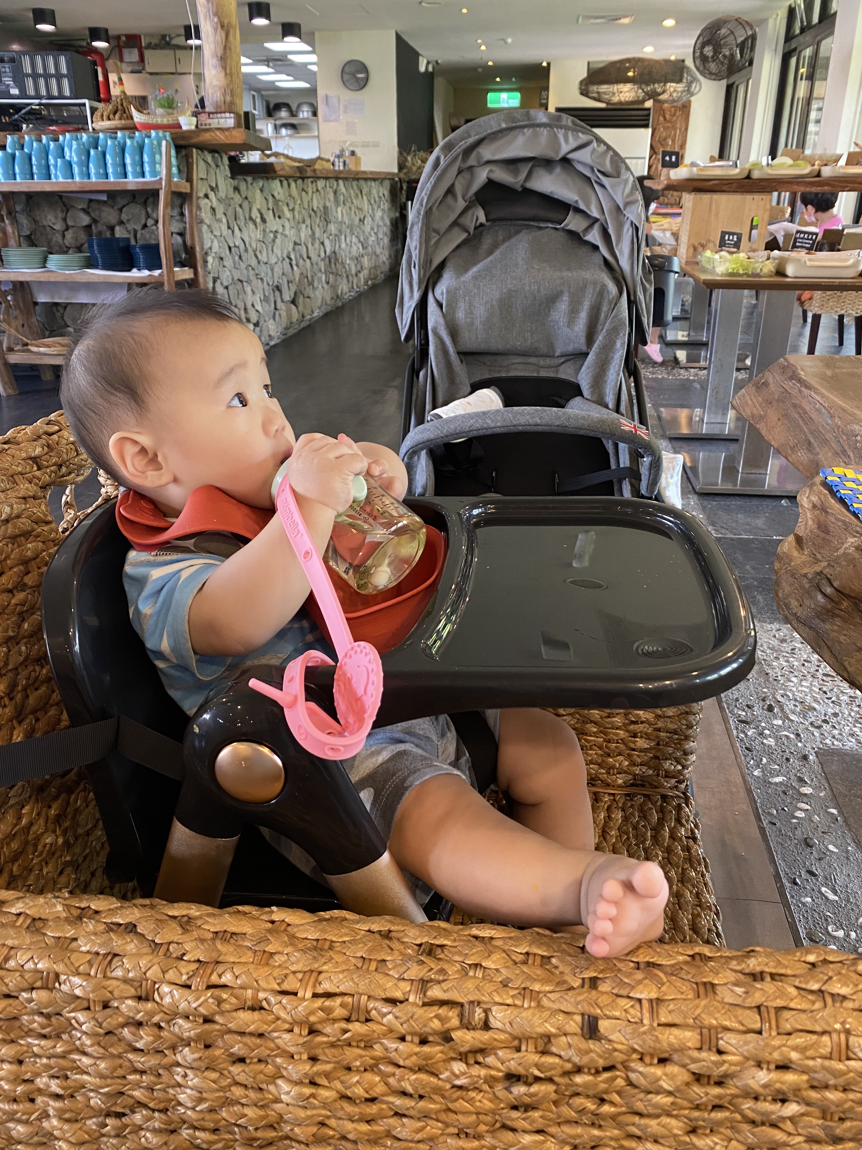 - 副食品:原則上午餐跟晚餐都是使用常溫寶寶粥或寶寶燴料,早餐直接吃飯店裡的。我自己出門旅行時對小孩很寬鬆,一歲前只會買80g的可以快速餵完,如果吃不夠再搭配一點大人的食物。寶寶粥時期我很愛裸廚房的小包裝,日本的Wakodo和光堂常溫寶寶食物則是從以前到現在我都很喜歡在旅行時使用。一歲半後,包包內會放著常溫匯料備用(每日準備一份),但只要餐廳現場有他可以吃的就跟大人一起吃,早餐如果飯店沒供應,就是便利商店的烤地瓜與白饅頭 ,總之出門旅行就是湊合囉!