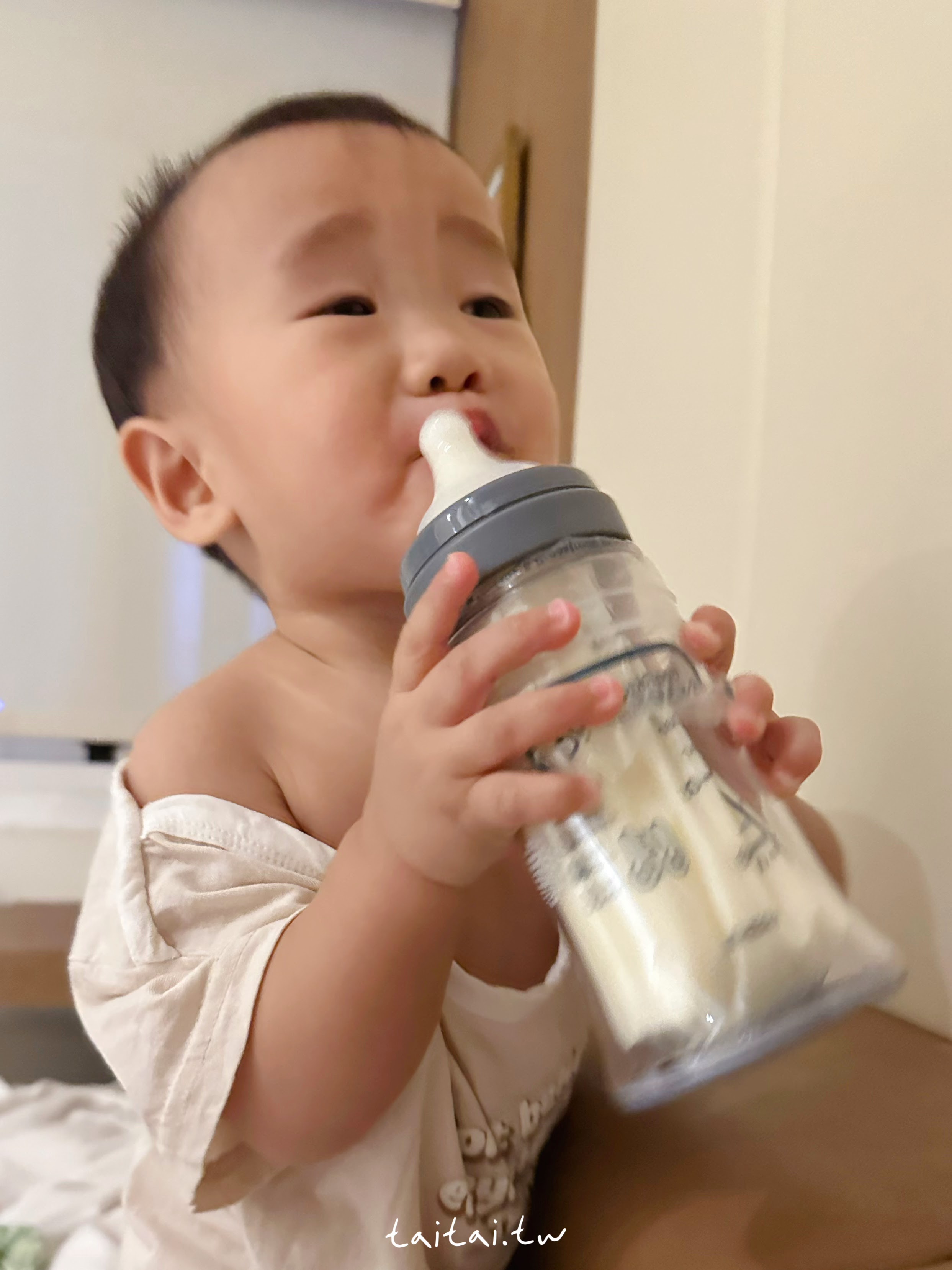 - 配方奶:我的母奶一直都無法完全cover龍哥的需求,所以都會搭配配方奶,一歲半前,出門時我是用明治Q貝樂、塊狀好攜帶。一歲半後,逐步加入120ml保久乳取代甚至直接用鮮奶隔水加熱取代睡前配方奶。
