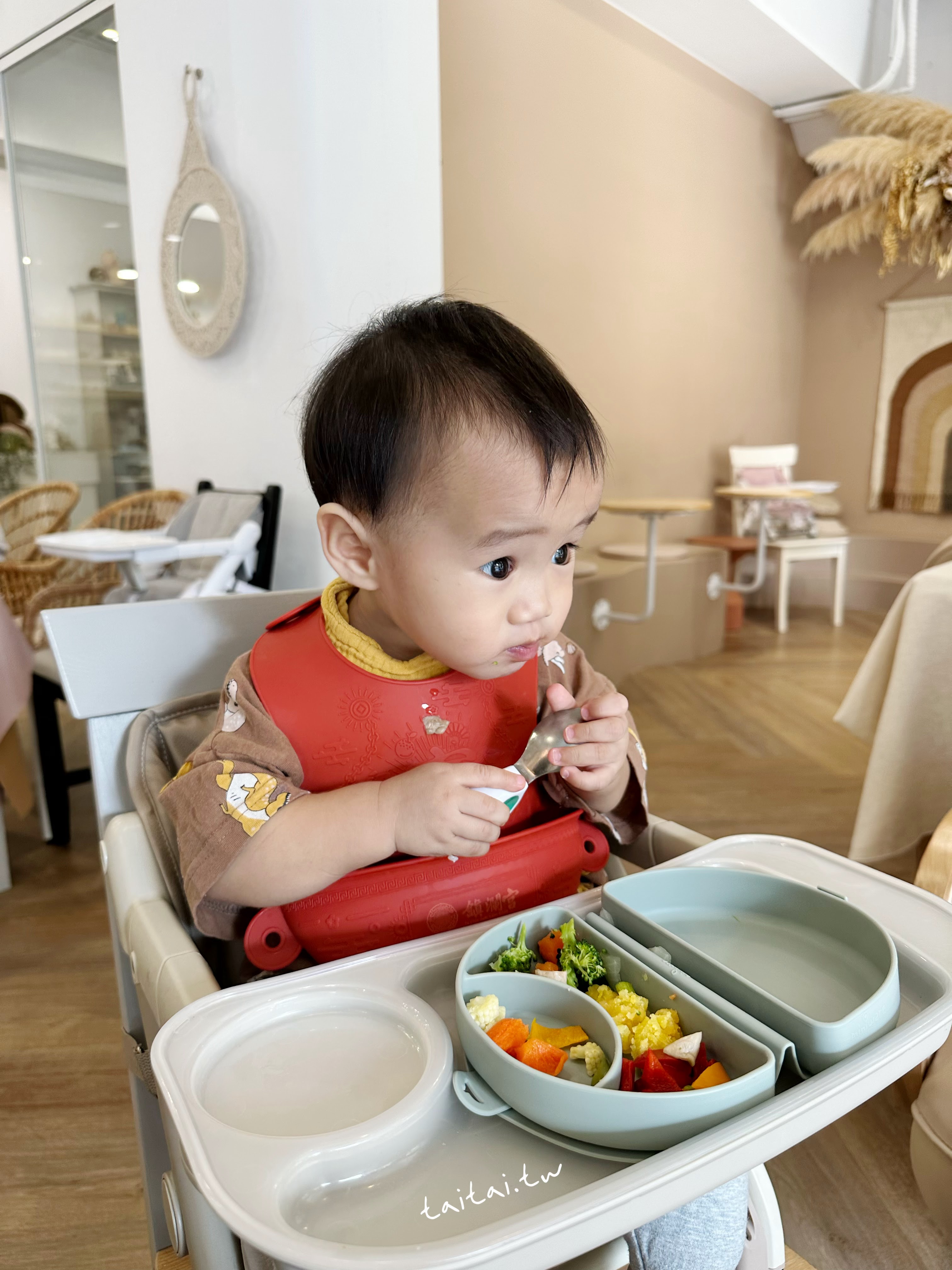 - 圍兜兜:一歲半以下很會掉飯掉菜的時期,建議使用矽膠圍兜比較方便現場清洗與擦乾。一歲半後,再視情況改用黏貼式的拋棄式紙圍兜兜,蝦皮上一個五元以下的就可以了,品質都差不多。