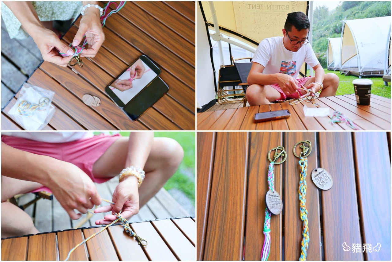 ▲森林系編織鑰匙圈 DIY(不定期調整,請依現場為主):等待入住的同時,會提供手作DIY體驗,這次體驗內容是編織鑰匙圈。我跟漢斯兩個人看著手機影片就快速地做起來,不善於手工藝的他也順利完成美美的鑰匙圈啦。