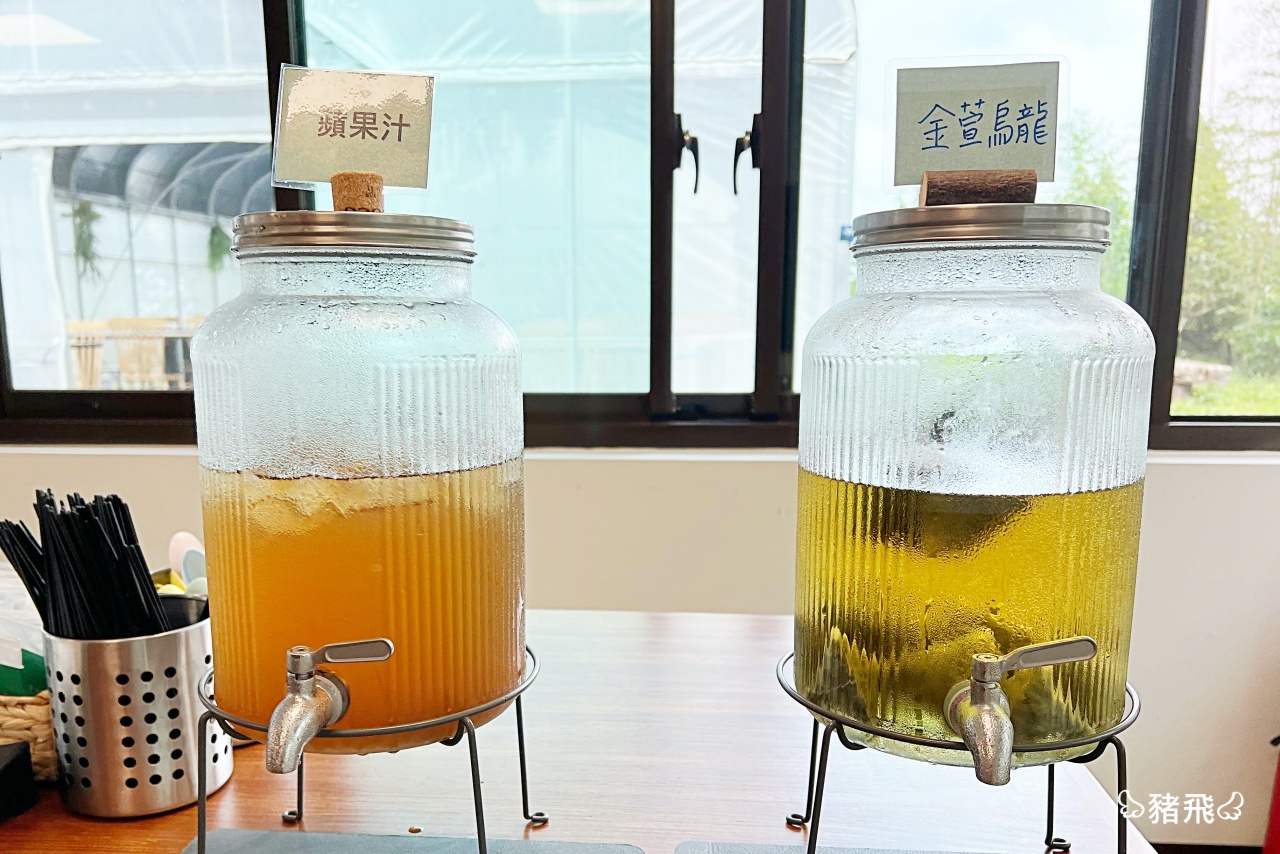 下午14:00抵達園區可以先享用園區招待的簡單小點心跟茶飲,坐了三個多小時的車,很需要用甜點撫慰一下心情才行。用可愛的荷蘭小鬆餅、古早味餅乾,配上透心涼的金萱烏龍,來到遠離塵囂的山上,心情跟胃口都變得特別好了。