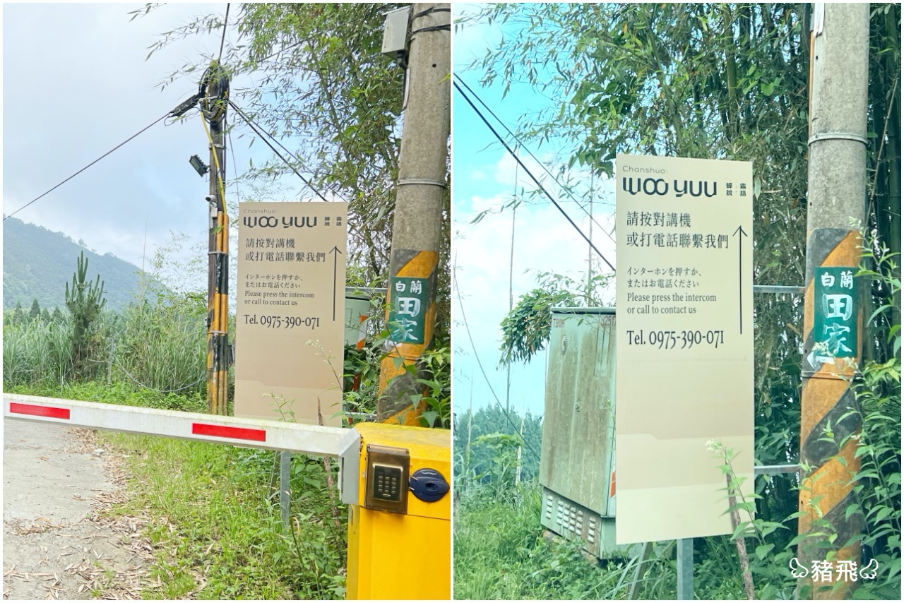 位在海拔1200公尺之上的新竹縣五峰鄉【蟬說:霧語 WooYuu】說它是雲端上的森林秘境也不為過,從台中出發足足要開車將近3小時的時間,進入山區,經過多個彎路後才抵達。連平常很愛開車的漢斯先生都說他開車開到懷疑人生了(笑)。抵達園區門口時,會有柵欄,這時候就要按對講機通知人員,並提供訂房資料,確認無誤後才會開啟柵欄。對於人員進出管控很用心。