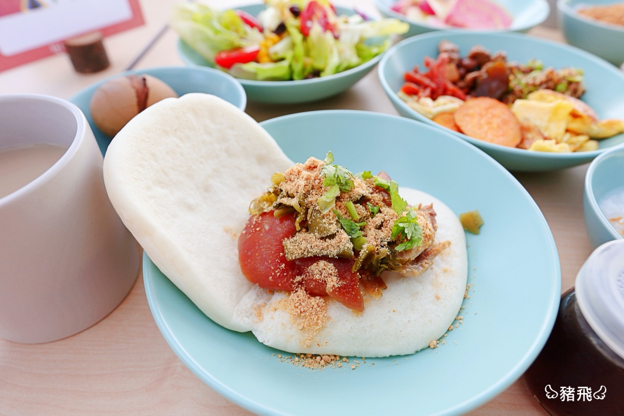 ▲最特別的是可以DIY刈包,在熱呼呼的刈包皮上夾入獨家滷肉、酸菜、花生粉、香菜,這樣一份就超飽足。