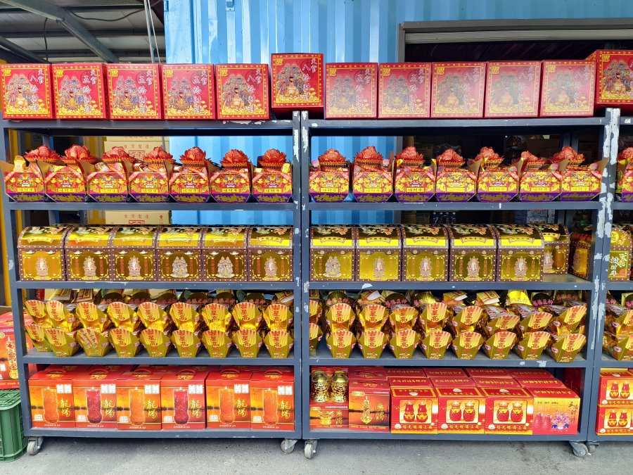 ▼左側擺放的就是各種發財金,有大船入港、藏寶箱等多元造型,真的很促咪耶~~除了泡麵、發財金之外也有販售一些糖果、餅乾及土地公愛吃的麻糬!