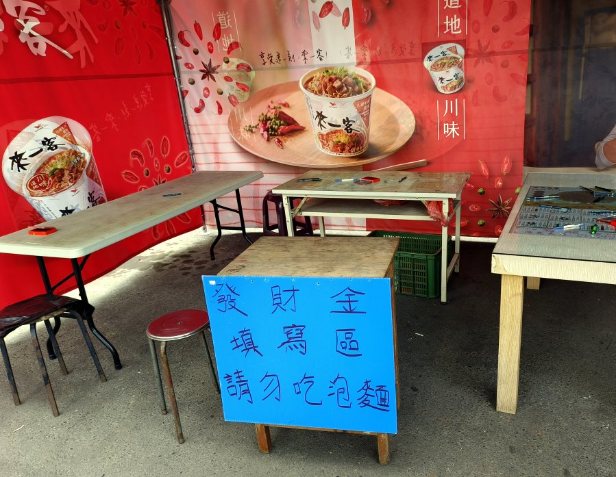 ▼不過棚內桌椅主要是提供大家來這裡填寫發財金,而不是泡麵區喔~~大家別走錯棚了(笑)!