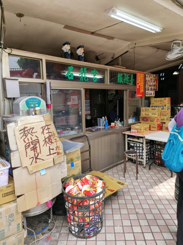 ▼石龍宮到囉!!二樓為服務台、管委會與添香油錢、拿取金紙、供香的地方,另外拜拜完的朋友也可以到這裡拿取泡麵享用!