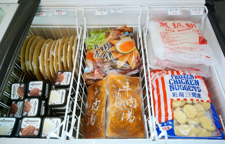 ▼「饕嗑塔塔」結合直播、團購與社區超市的經營模式,從線上直播轉而有實體店面,在家附近就能取貨,還能省運費,有時候還能直接來門市採買三餐所需,對於消費者來說真的是一大福音啊!像這個冷凍櫃存放的都是團購商品,大家可以直接來報電話號碼取貨即可~~