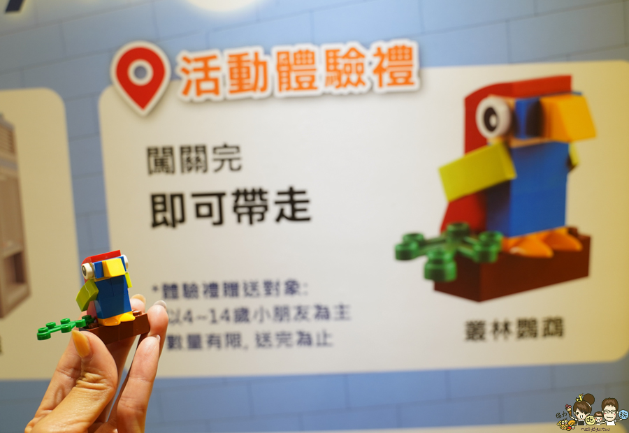 最後就是拿著鸚鵡積木,完成就能挑戰成功,把免費的樂高鸚鵡帶回家