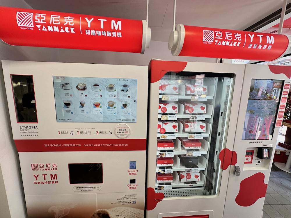 - YTM蛋糕販賣機、YTM研磨咖啡機:24小時
