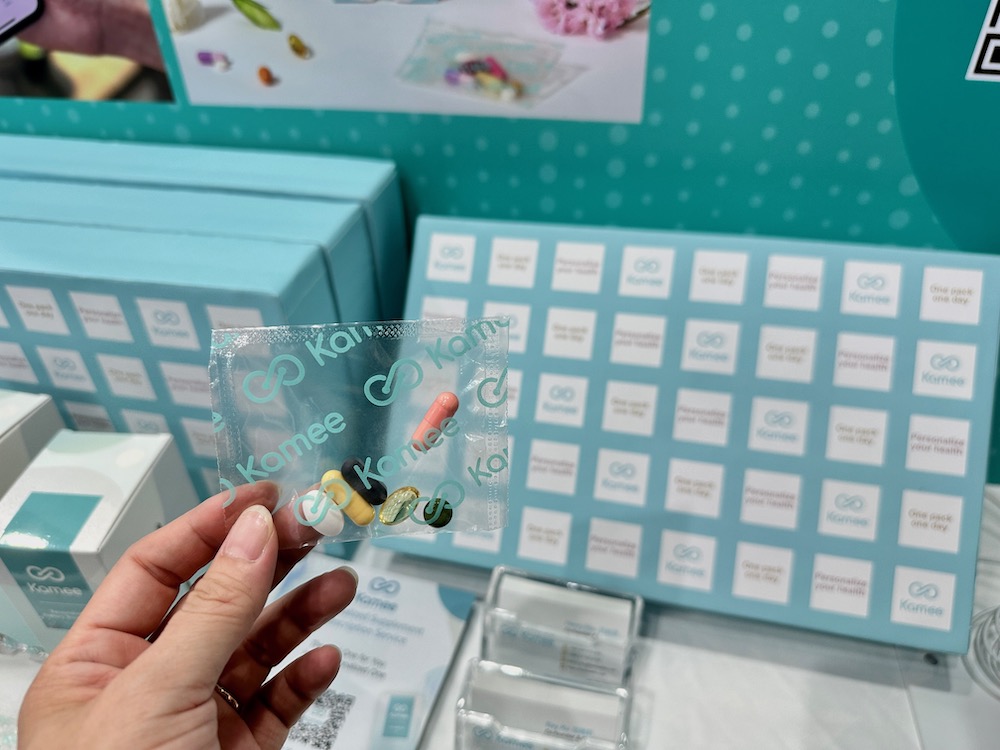 際電腦展新創展區中,就有一家由醫藥專業人士與軟體工程師所打造的健康產業公司 Kamee 咖米,透過數據分析與演算法,協助民眾知道最適合自己的營養保健品組合,還能提供一天一包客製化包裝、訂閱服務,共有將近 30 種自有品牌,讓民眾直接一個包裝就能擁有最適合自己的照顧。