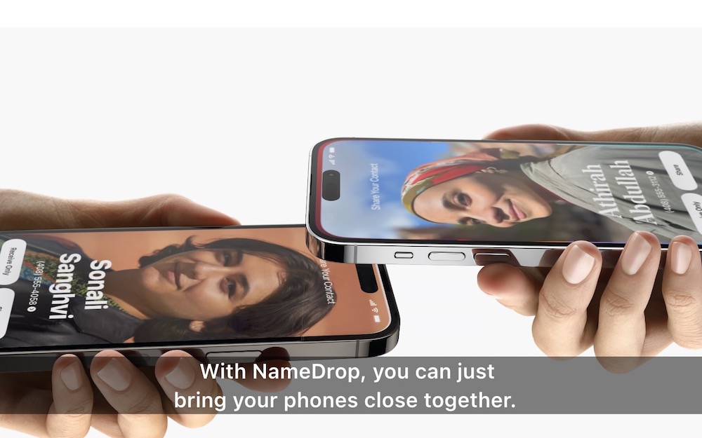NameDrop:這可以說是 AirDrop 的再升級。NameDrop 能讓我們透過把 iPhone 靠在一起後就能傳送資料,Apple Watch 用戶也能使用 NameDrop,只需輕點「聯絡人」App 中「我的名片」的「共享」按鍵,或是輕按「我的名片」錶面複雜功能,再將 Apple Watch 靠近他人的 Apple Watch。如同所有 AirDrop 體驗,這些新功能透過加密連接,安全地共享內容。