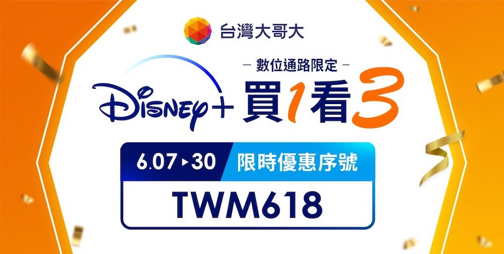 台灣大旗下擁有串流影音平台 MyVideo、MyMusic,也是 Disney+ 台灣電信獨家合作夥伴,聯手提供優質影視內容。據台灣大統計,在影音加值服務的付費用戶中,高達41% 申辦 Disney+ 服務。台灣大回饋用戶,月租型用戶即日起透過台灣大 Disney+ 活動網站,輸入優惠序號「TWM618」,申辦「Disney+單購月訂案」(原價 270 元/月),只要支付第 1 個月 Disney+ 服務月費,台灣大幫忙買單續訂後的連續 2 個月,等於買 1 個月,暢看 3 個月,相當於直接訂閱整季 Disney+ 省下超過 65%月租費。