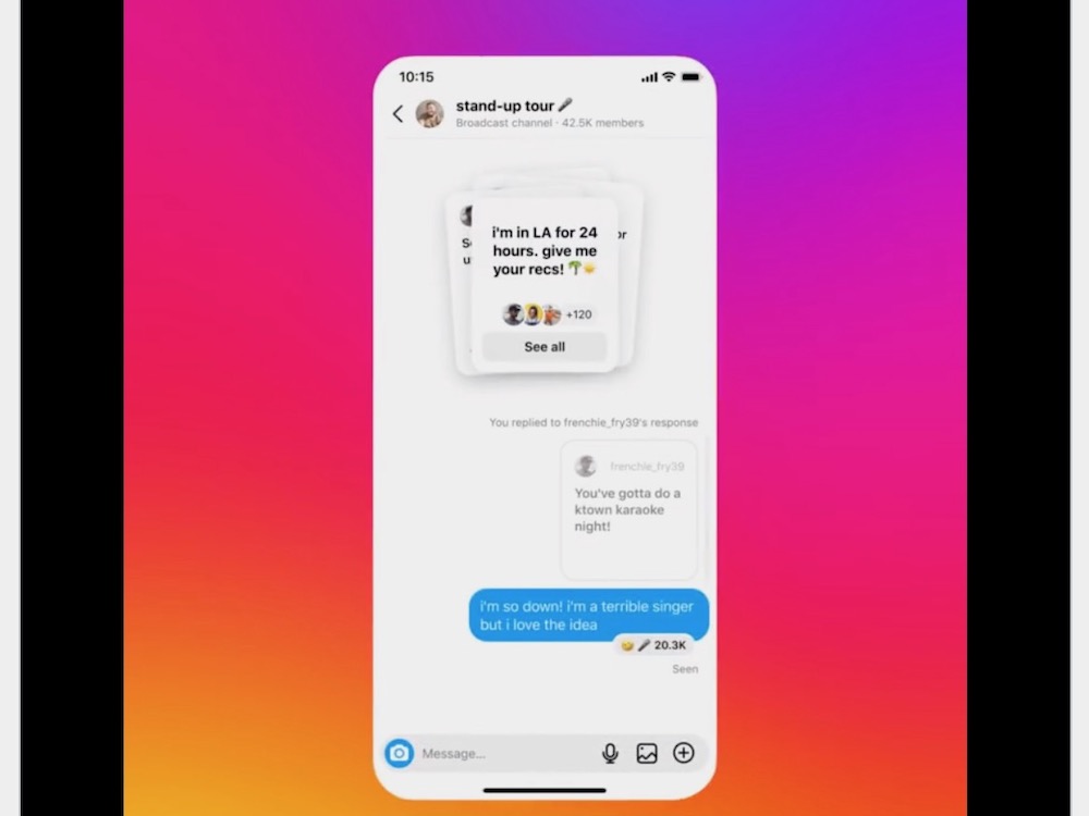 IG 上的廣播功能日前僅提供印度、巴西等少數地區用戶體驗,現在將陸續開放至全球用戶更新使用。根據影片的介紹,廣播功能是一個僅提供給創作者與粉絲互動的服務,在廣播頻道中創作者能提出問題後,讓粉絲對自己提出的內容來做出反應,還能使用投票功能來投票。