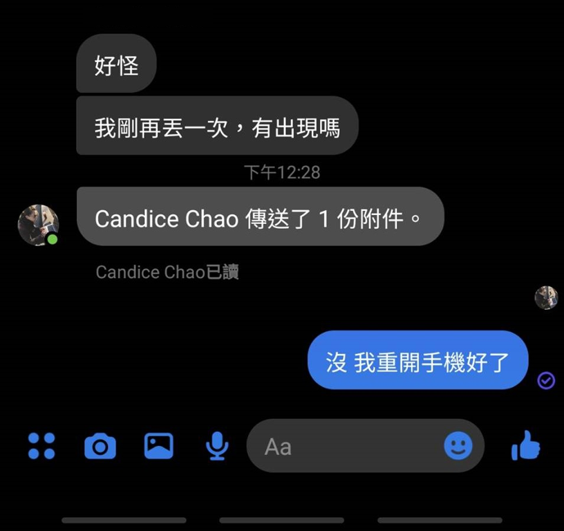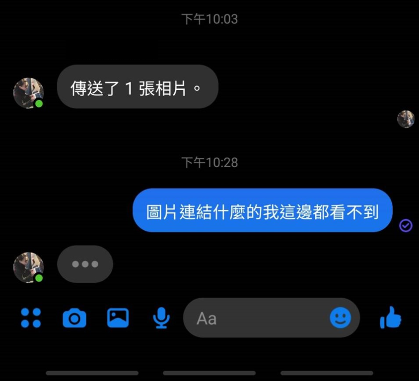 此次錯誤在 6/16 推送的 Android 版本 Facebook Messenger 上發生,當對方傳送照片後,僅會出現傳送了 1 張照片,完全無法看見照片也無法下載。