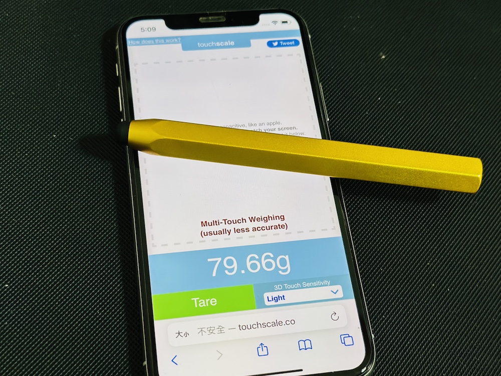 這邊要提醒的是,iPhone 的秤重畢竟是透過螢幕來進行,除了東西真~~~的不要太重,像是整個人站上去量體重這種外,因為 iPhone 是電容式觸控,是利用微帶電的性質讓面板可以與物體進行感應,所以如果想要幫小東西秤重的話,還是要稍微注意一下物體的材質唷!