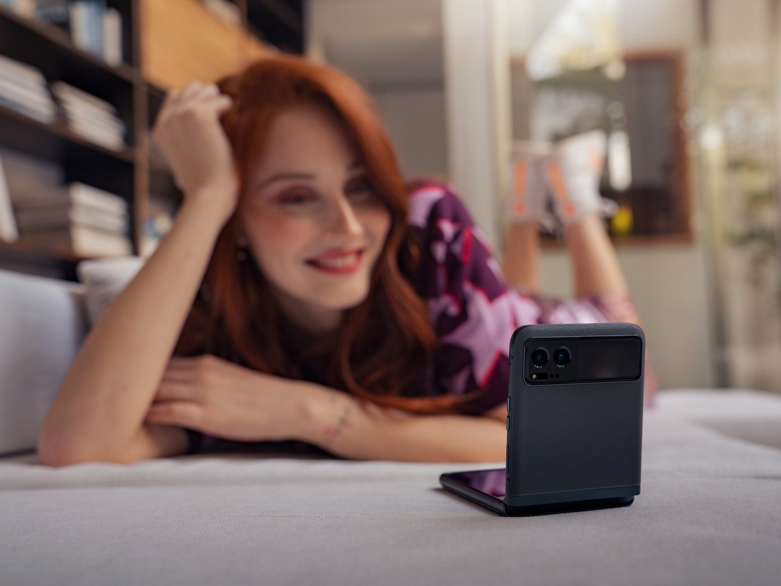 motorola razr 40 ultra 採用水滴型態轉軸,翻開手機時呈現出無縫光滑的全尺寸螢幕,也能支援多角度懸停,保持在不同型態的站立模式。此外,motorola razr 40 ultra 擁有優異的 3,200 萬畫素自拍鏡頭和Quad Pixel技術,搭配免持拍照錄影功能,讓創作者們不再需要攜帶腳架,比五即可輕鬆 4 連拍;或是透過雙螢幕同時拍攝,產出創意短片;即使在光影昏暗的環境下,手機的夜拍模式也能夠過演算法處理所拍攝的大量素材,轉換成清晰的成像。